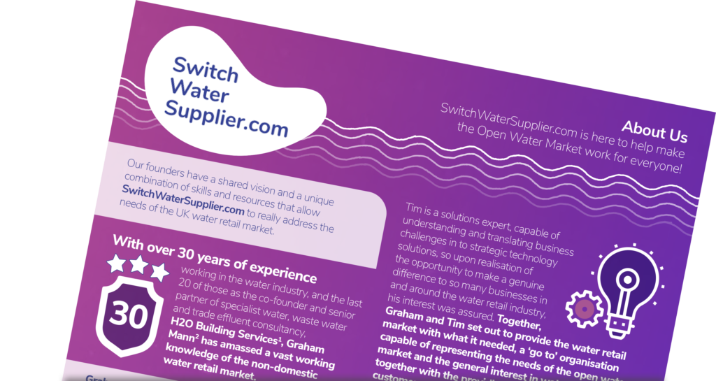 Our founders have a shared vision and a unique combination of skills and resources that allow SwitchWaterSupplier.com to really address the needs of the UK water retail market.